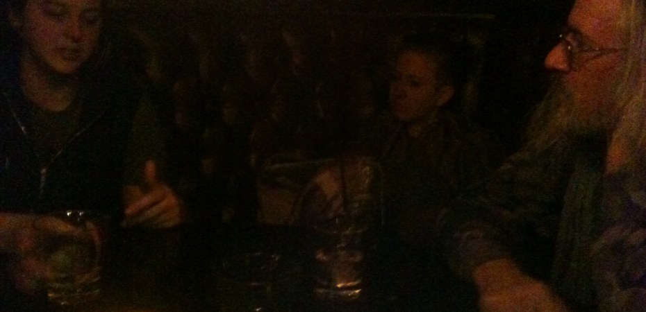 Glasses clanked, and Mitchell continued, “I’ve definitely heard some Naropa students express an intimidation factor about the Laughing Goat readings… Tom and the reading itself. I think they are more drawn to the Innisfree reading because Joe holds a really quieter, quote un-quote, safe space. Where as the Laughing Goat is very much like, ‘Get up here, so you think you’re a poet!?’ Which, I like what you (Marcus) mentioned about it, bridging those two communities; of spoken word slam and academia. We’re able to kinda transcend both of those at that reading (Laughing Goat).”