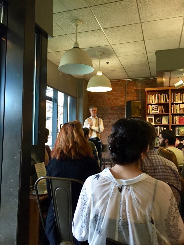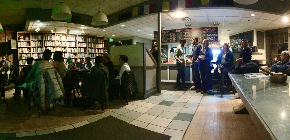 In truth, it had almost everything to do with the energy of the owners, Brian and Kate Buckley, who met in a college poetry class back East and in 2010 rolled the dice on their mutual dream to have a poetry-only bookstore like Grolier’s in Boston, which was a meaningful spot for them. It was they who envisioned the welcoming and inclusive community space, with ethically-sourced coffee, a great team of well-trained baristas, and a wide selection of poetry books, (with the odd book of prose or non-fiction here and there.)