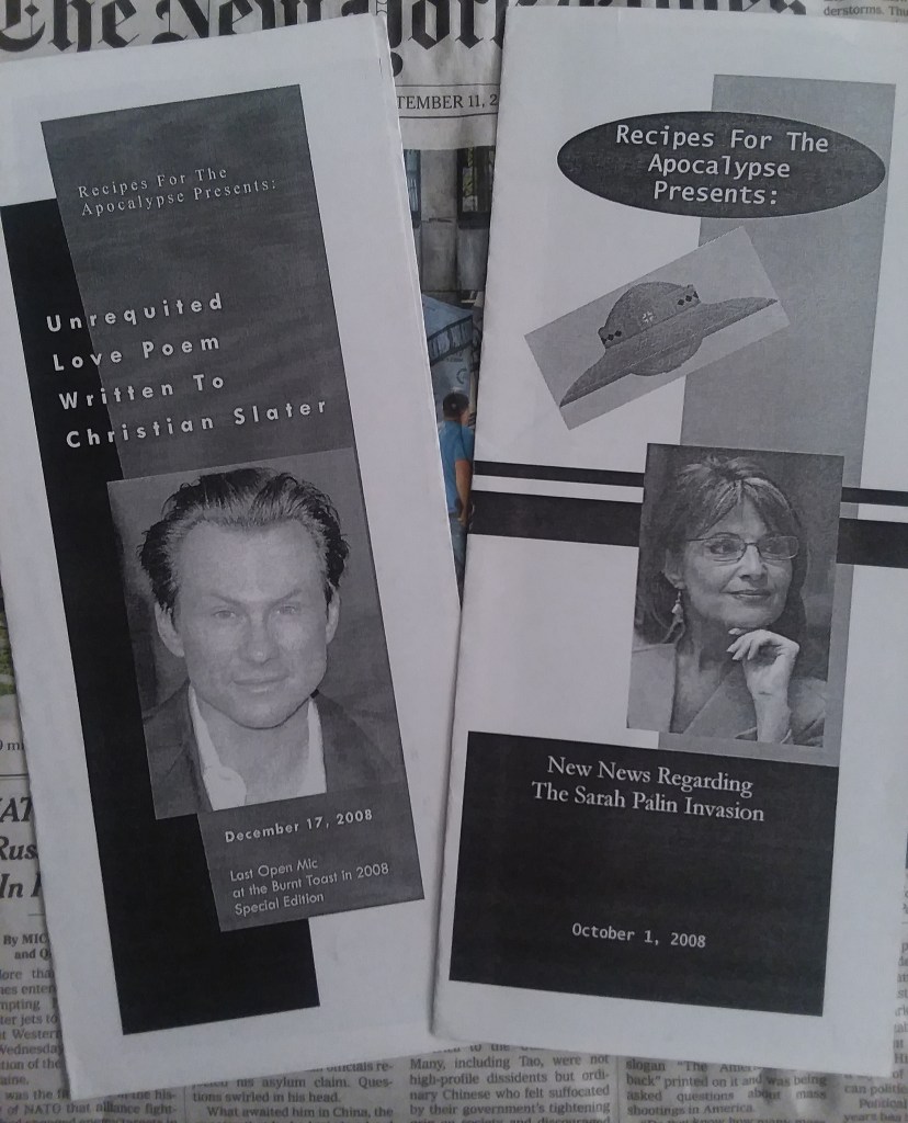 Hi Earthlings. It’s been a while. My name is Multiverse Johnson. I used to be the Brochure Writer for the Baobob Tree Press/Illiterate Magazine weekly open mics at the Burnt Toast on The Hill back in the earlier 2000’s.