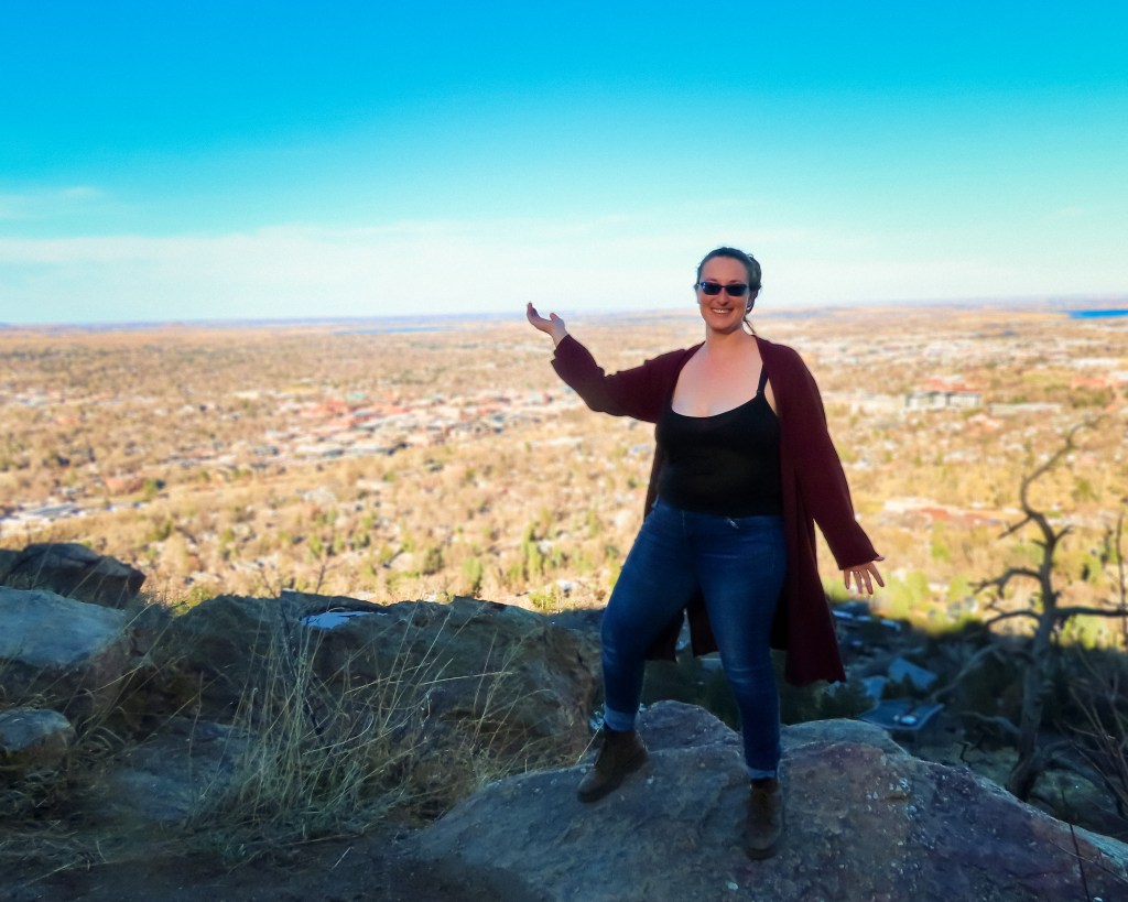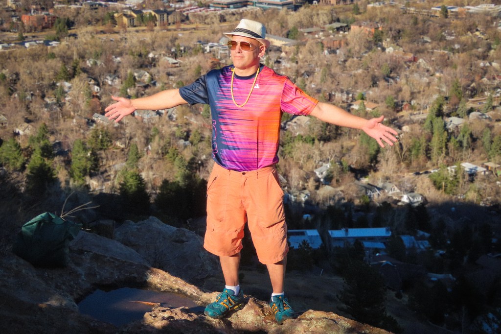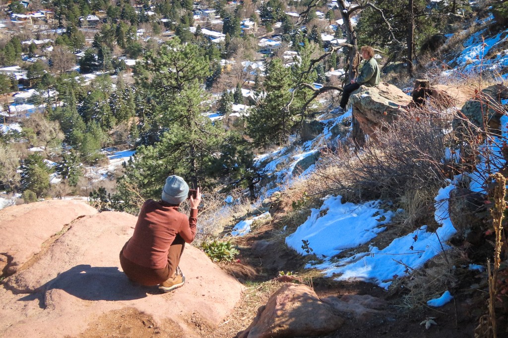 In early March we went up to the Flagstaff Overlook in Boulder, otherwise known as Panorama Point, on the day after like the only time it’s snowed this year. As with any attempted organization of poets, fate decided who would actually show up for the shoot. Luckily fate came thru and delivered 9 of our snazziest dressers in the scene. It was a two day shoot with photographer Andrea Becker gracing us with her talent and expertise the first day, and me following up the next day, scrounging up anyone who was willing from that month’s BAFS Second Sunday class at the library and doing my best with non-avian subjects as the sun set rapidly over the Flatirons. But no matter what amateurism I brought to the table, Andrea was able to salvage it later with her super pro editing skills, and so here ya have it – your guide to what to wear this spring, with a little expository flavor from each of the featured poets…