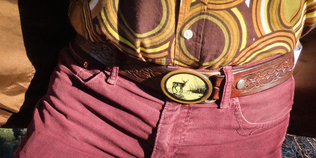 Three of the items are storied. The sport jacket is my ‘professorial’ tweed which implies I am prepared to edumacate ya. My new favorite limited edition shirt is from a British company called Loud Elephant that donates some proceeds to pachyderms. I bought that belt at a country fair in the Pocono Mtns when I was 14 and it still just barely fits, longest owned piece of clothing I wear.