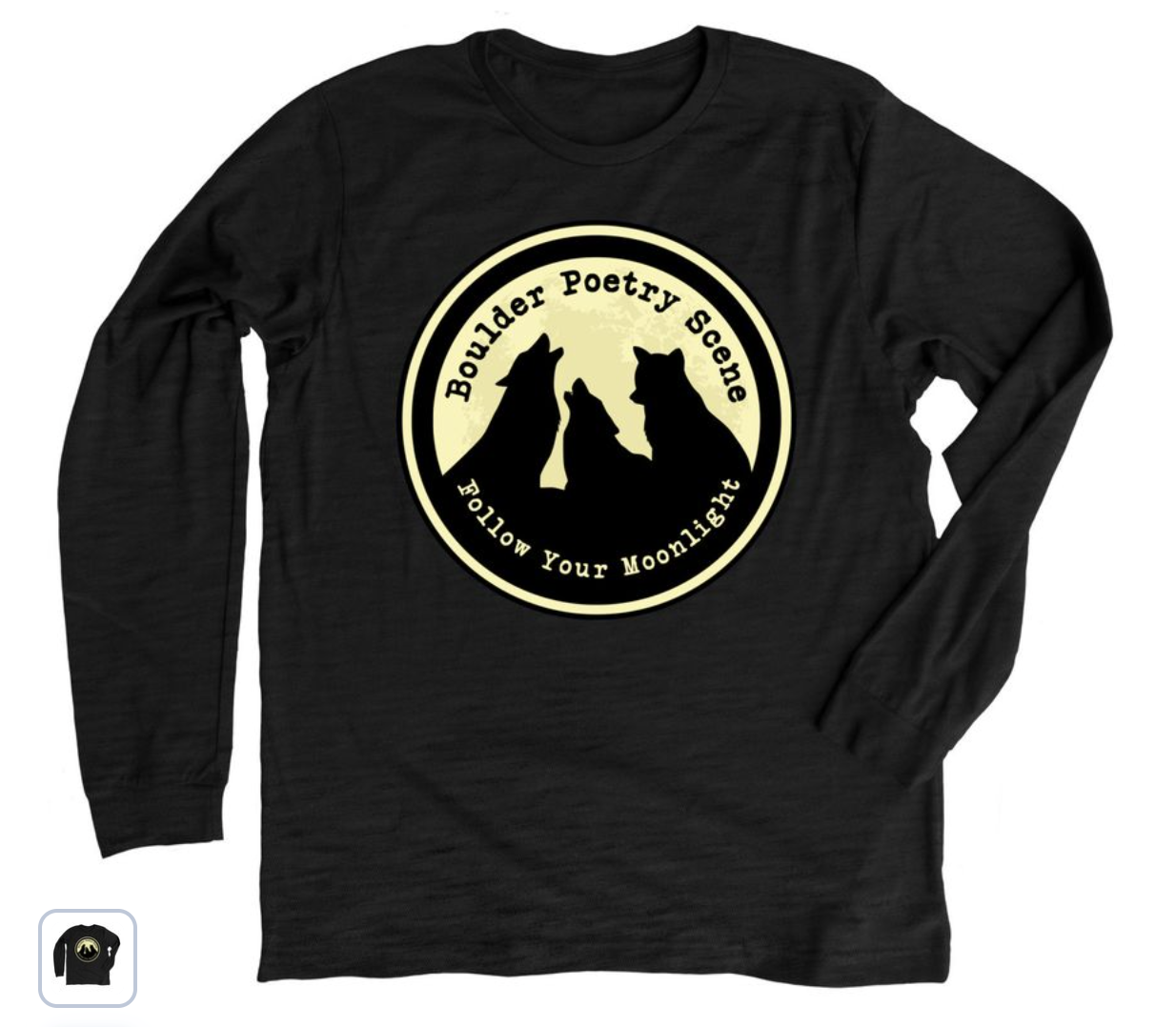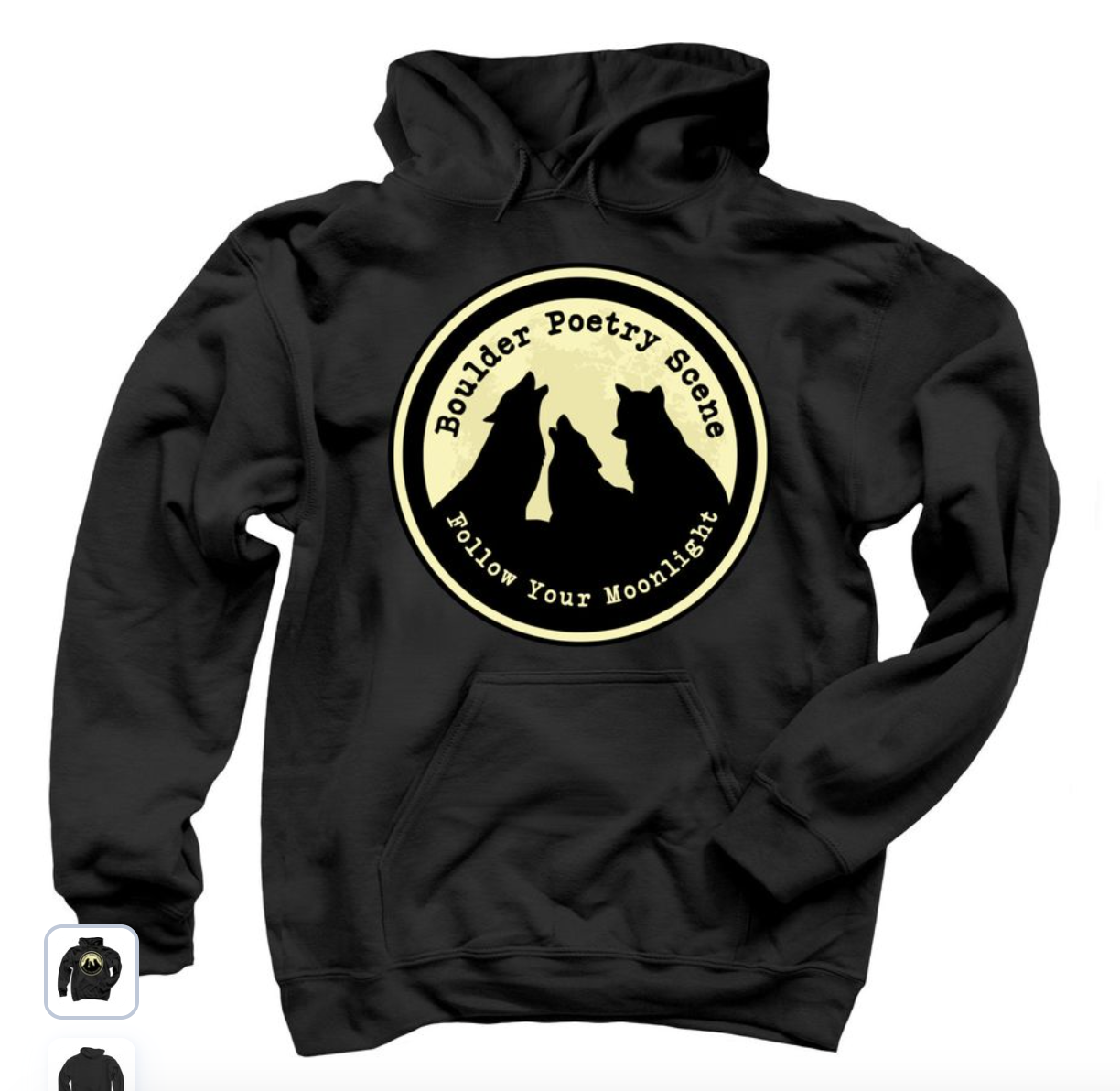 We’ve got shirts, hoodies, and hats. All proceeds go to support Boulder Poetry Scene!